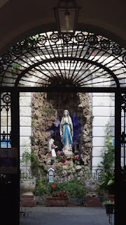 A gold statue of Madonna towers overhead as if blessing every ship that